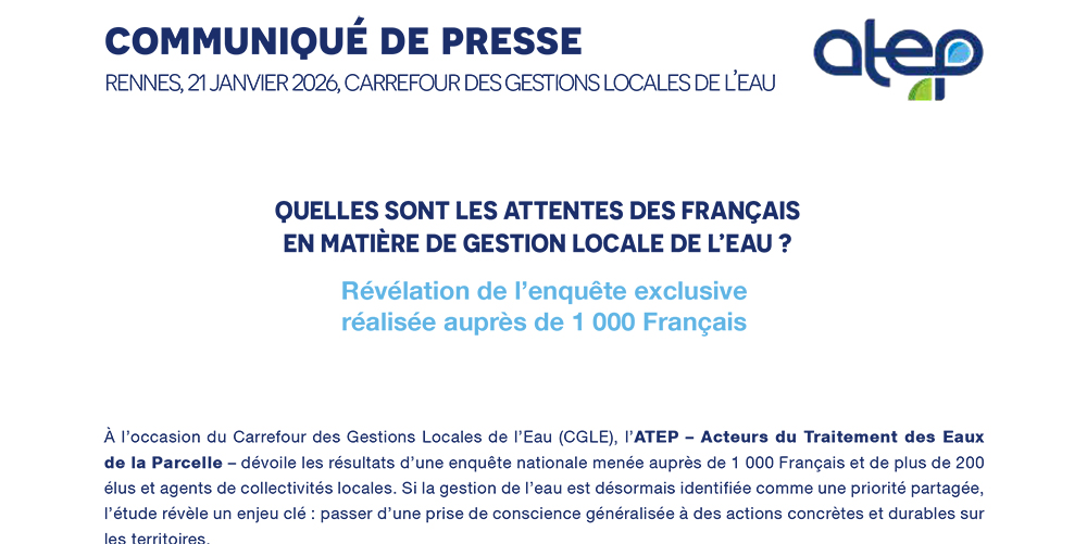 À l’occasion du Carrefour des Gestions Locales de l’Eau (CGLE), l’ATEP – Acteurs du Traitement des Eaux